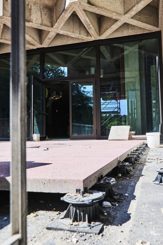The pink concrete slabs provided a clean and sophisticated finish, fully consistent with the contemporary identity of MIX Hotel Brussels. Beyond aesthetics, the solution improves water drainage and allows easy access to underlying technical installations, ensuring long-term durability and simplified maintenance.